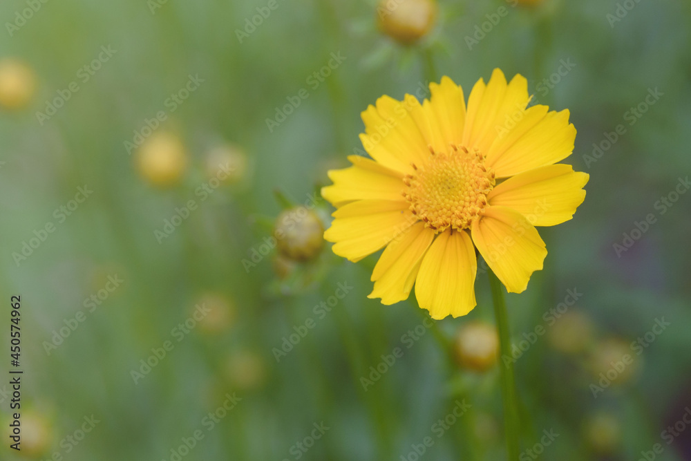 Bright yellow cosmos flowers sulfur-yellow Cosmos sulphureus. Beautiful garden flowers for a decorative landscape.