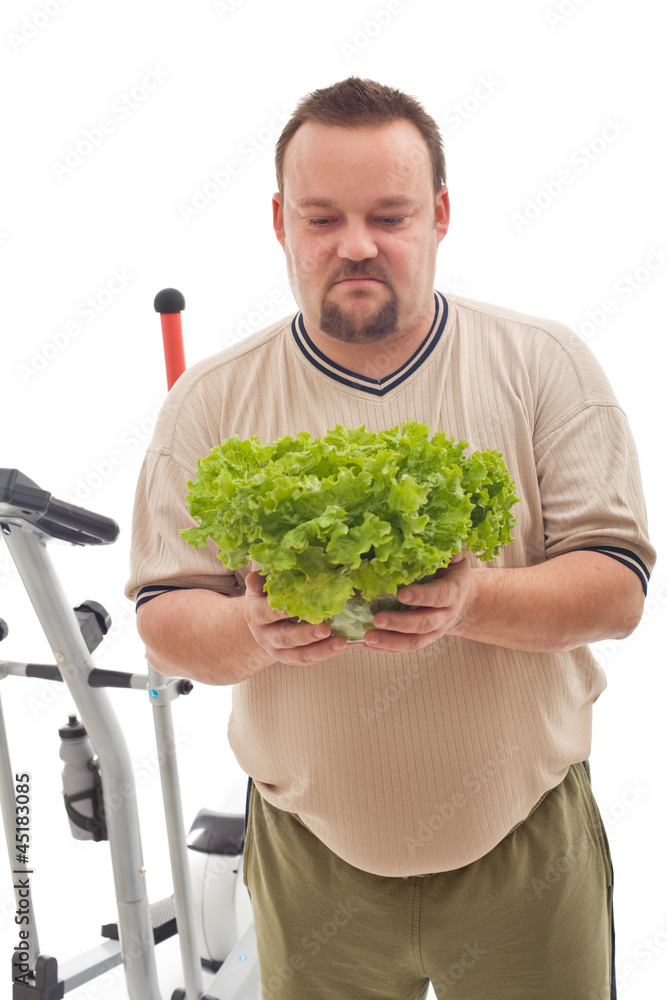 Overweight man not happy about his new diet