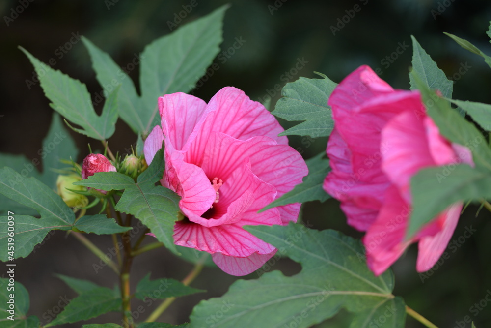 Hibiscus Summerific 'Candy Crush' swamp rose mallow (Marsh Hibiscus) - Hibiscus moscheutos pink flower closeup.