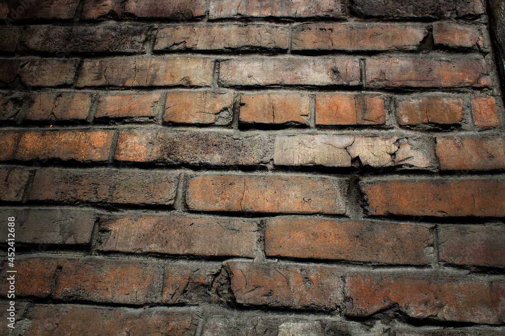 Old brick wall background. Grunge brick wall. Brown brick wall.