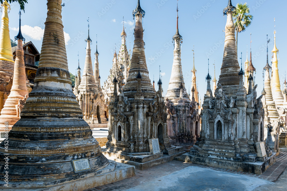 Myanmar. Nyaung Shwe. The Sankar Lake. Temple of Takhaung Mwetaw. Stupa