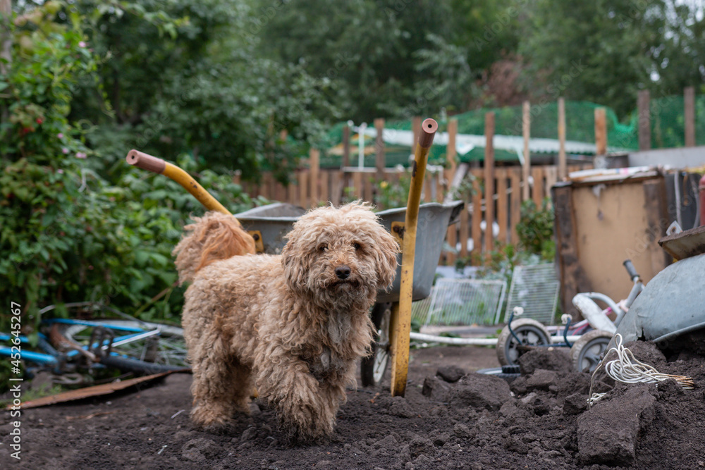 The dog lies resting