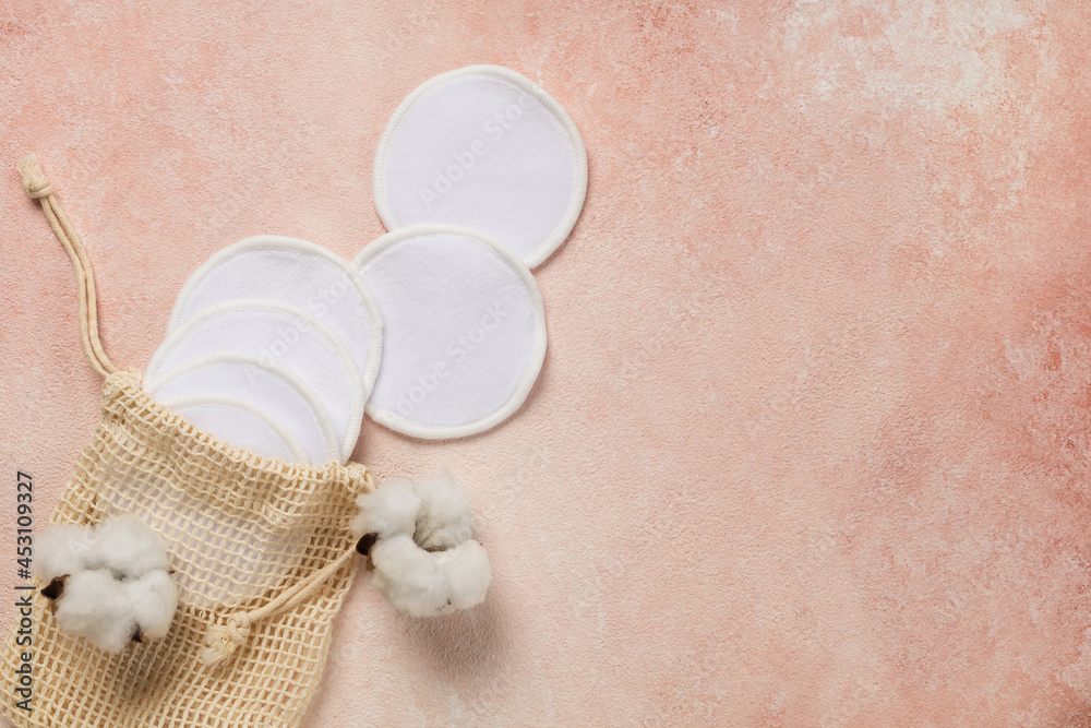 Reusable cotton pads on pink background