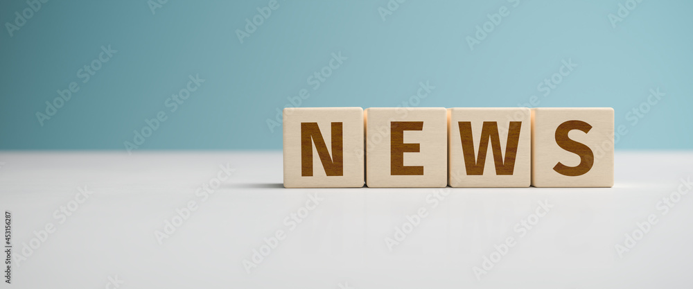 "News" web banner - the word "News" built from letters on wooden cubes for the use as a web banner.