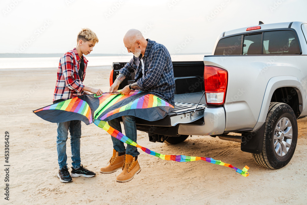 Father and his teenage son having fun