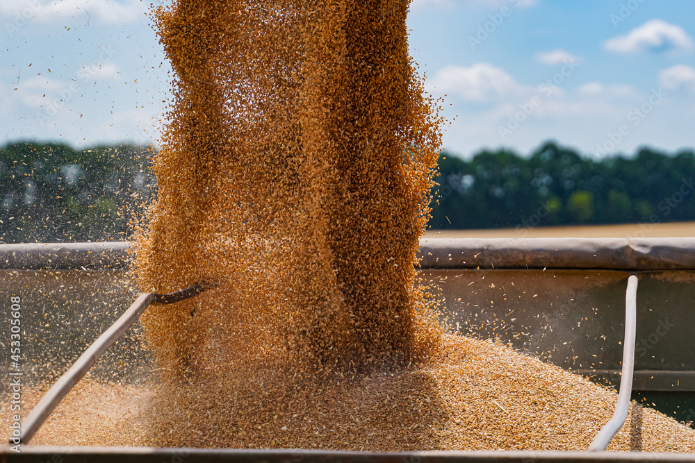 Agricultural farming wheat harvesting. Agronomy combine gold wheat harvester.
