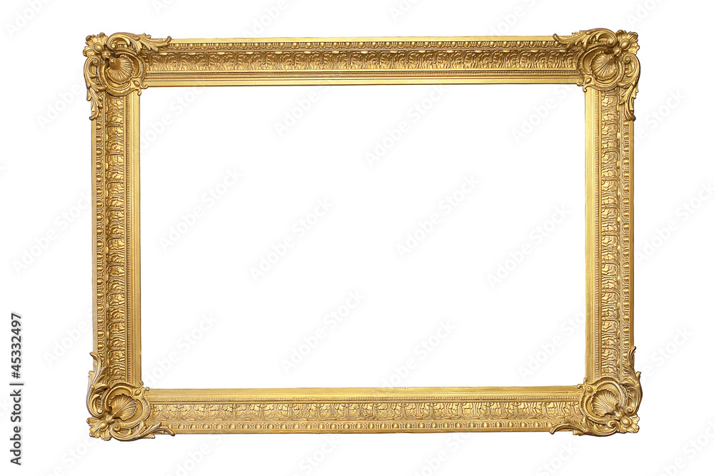 Old gilded frame isolated on white background