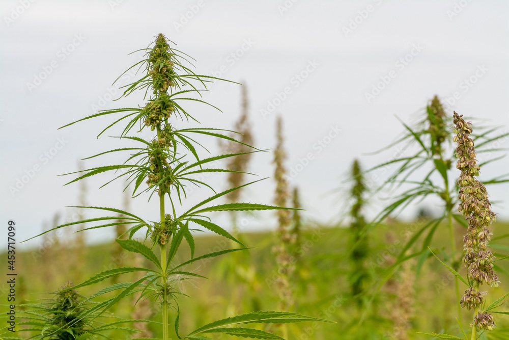 canabis on marijuana field farm sativa weed hemp hash plantation