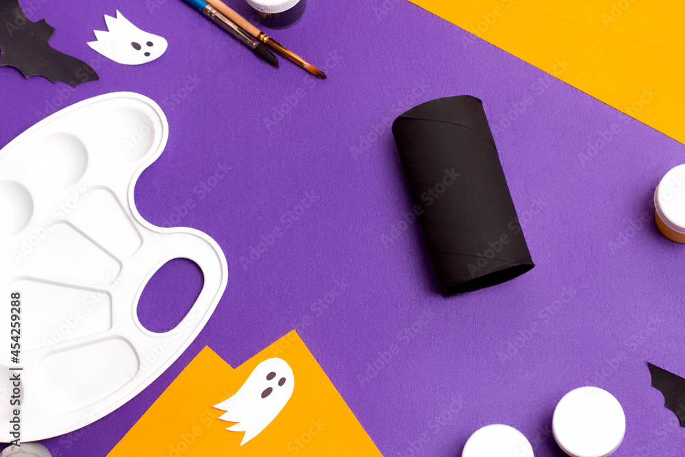 Handmade craft project toilet paper tube. Making cute monster for Halloween. Step by step photo instruction