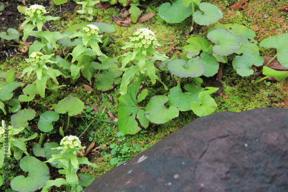 雨に濡れているフキノトウ