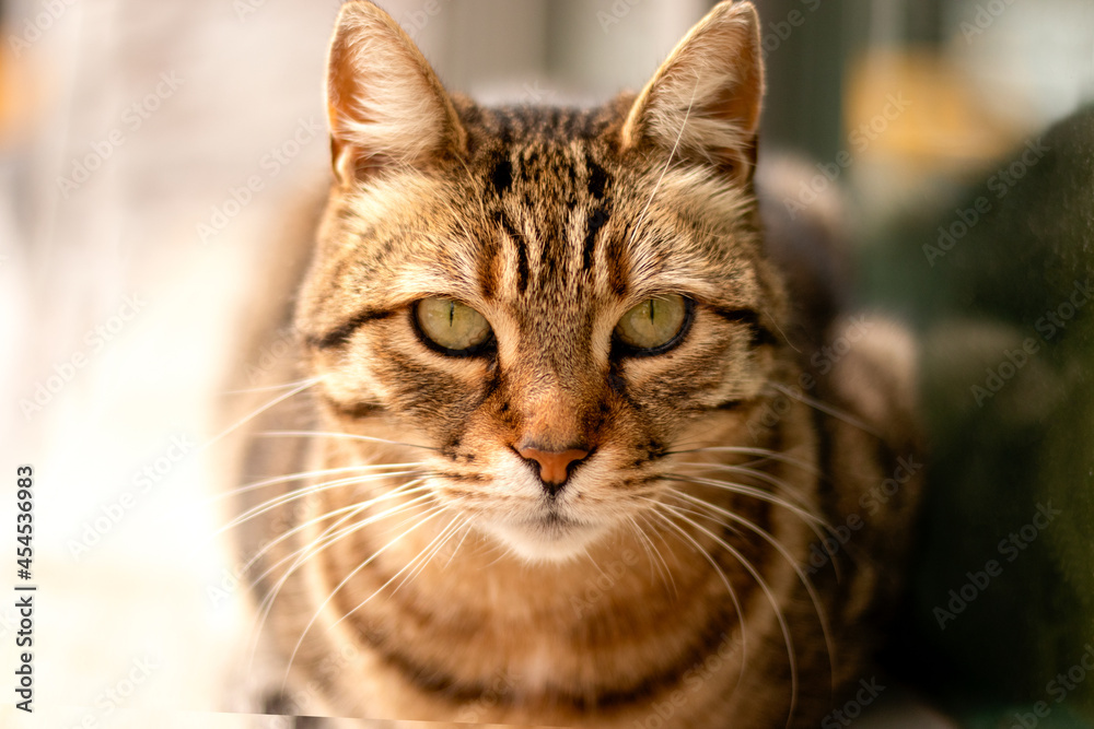 Close up homeless stray cat sitting and looking at camera. Cat in istanbul, Turkey. Homeless animals theme. Stray cat in the street.