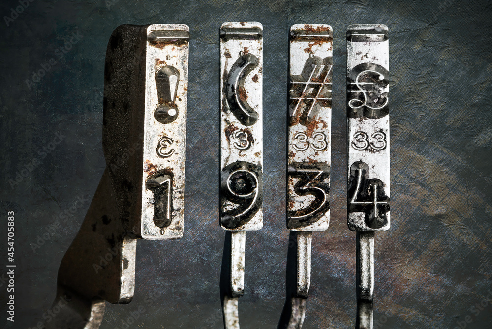 vintage old typewriter hammers with the date 1934 isolated