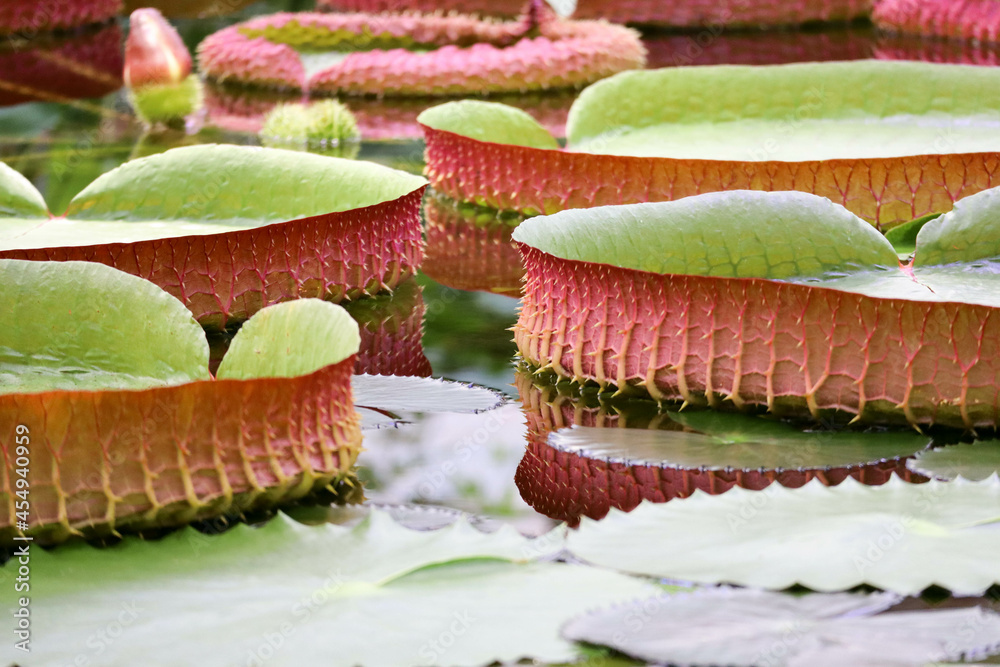 the largest of the water lily Victoria amazonica beautiful leaves in the pond