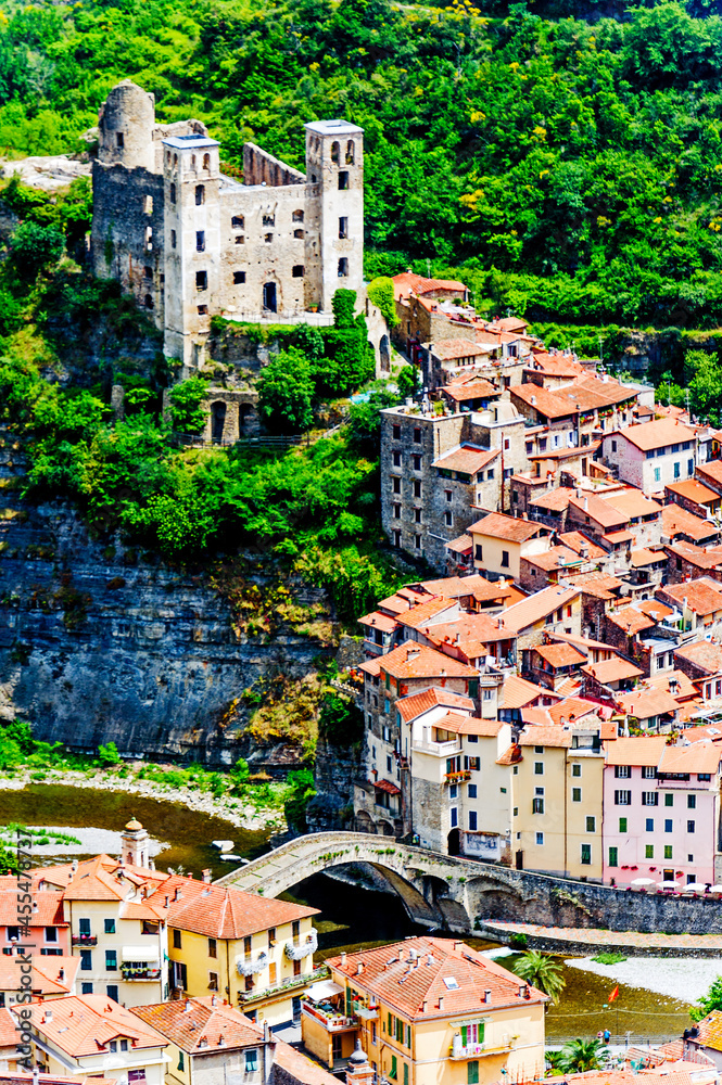Italy. Ligure. Dolceaqua. The village and the ruins of the castle