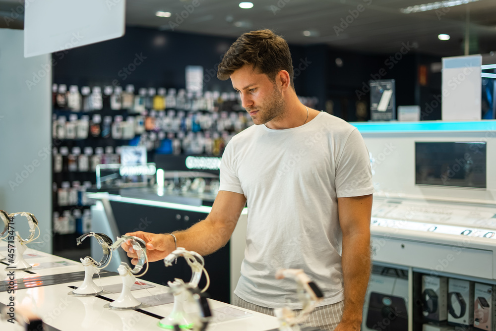 Man buying smartwatch in store
