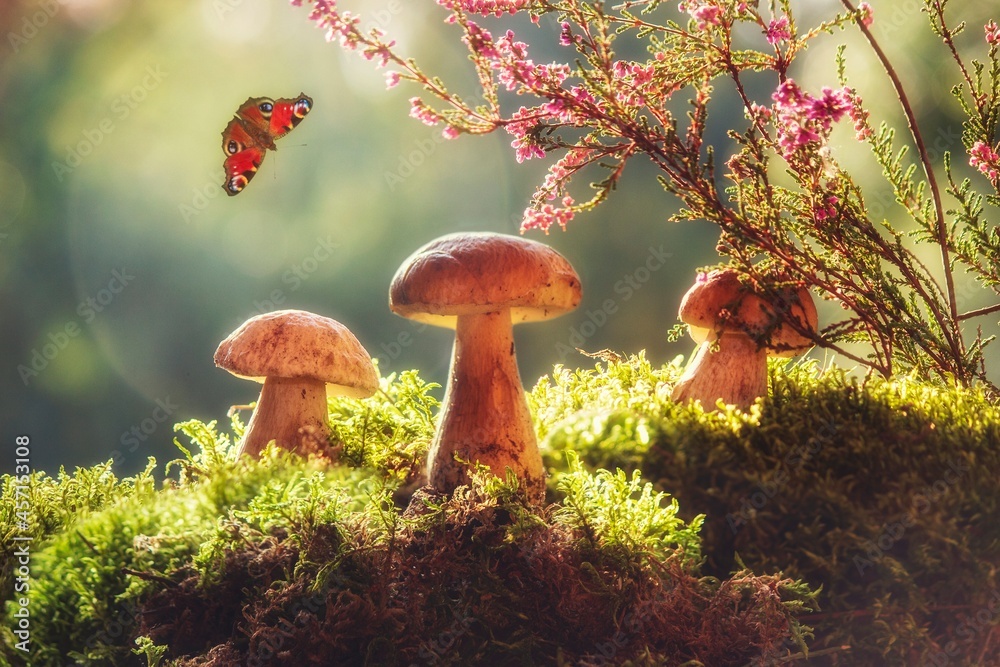 Autumn still life with mushrooms in the forest