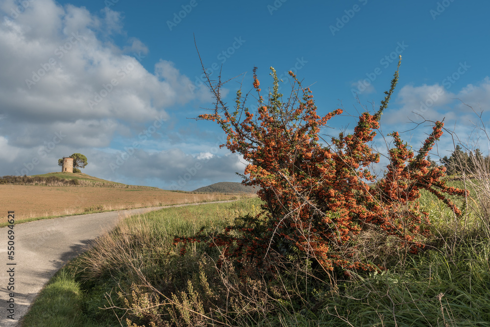 Rote Bteberitzen beeren vor Alm im Nebel