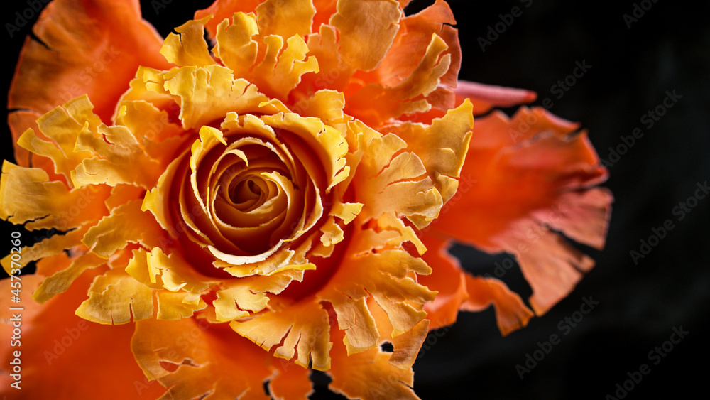Freeze motion of red rose frozen and exploding, close-up.