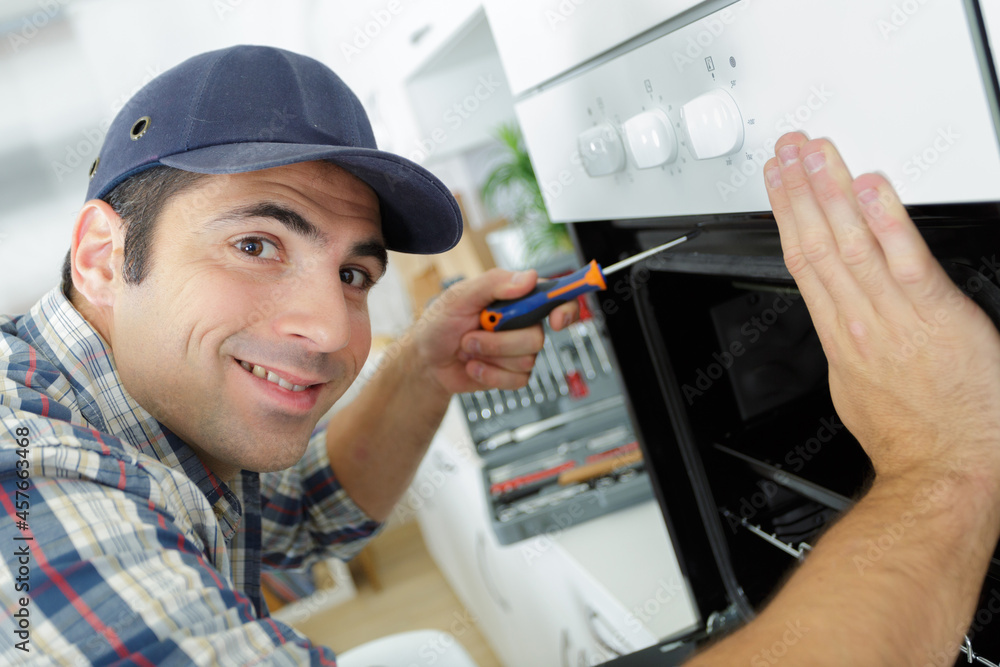 man repairing micro wave oven