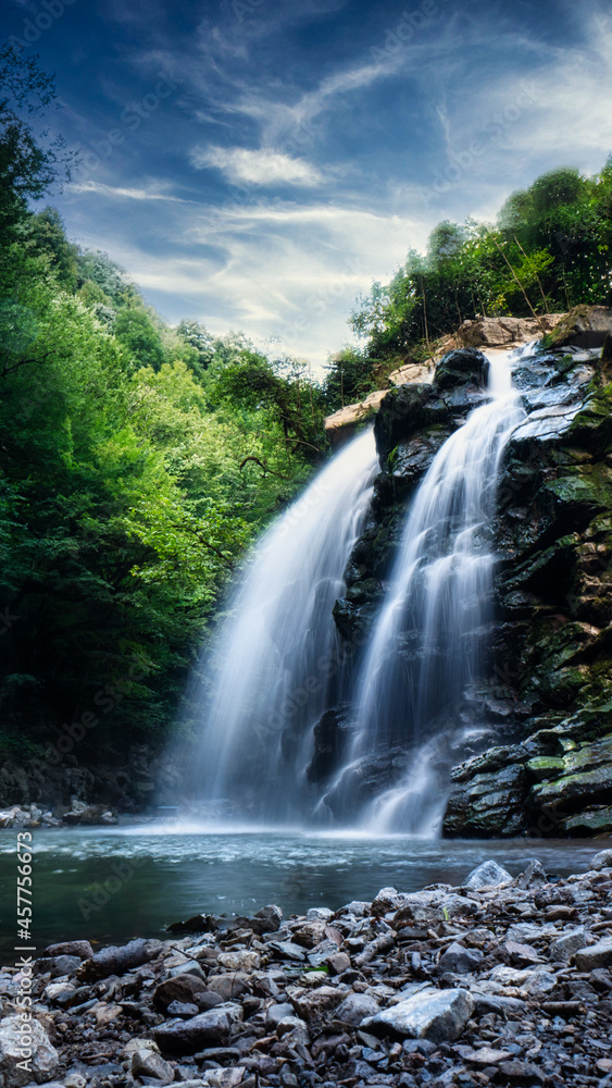Long exposure waterfalls in Sakarya Turkey, Long Exposure mountain waterfall vertical scene, Waterfall in mountains, Mountain waterfall, Hidden waterfall in tropical jungle in Turkey