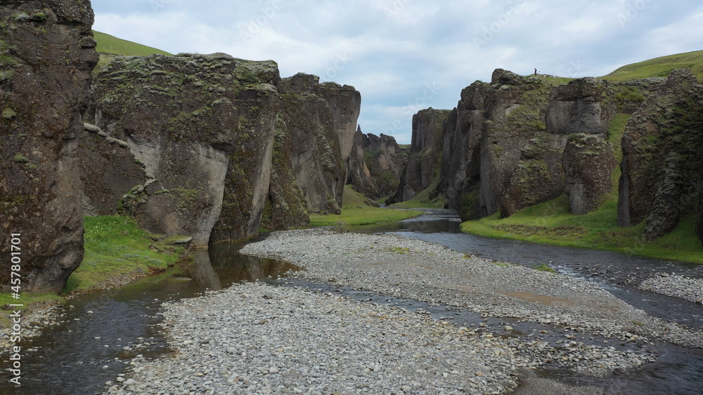 fjaðrárgljúfur massive canyon in Iceland, Aerial view , drone view, February 2021