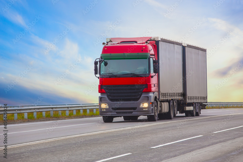 truck is driving on a country road