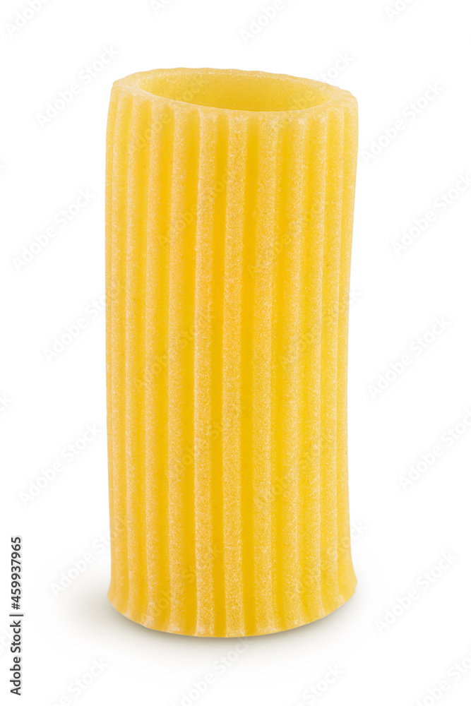 raw italian Rigatoni pasta isolated on white background with clipping path and full depth of field