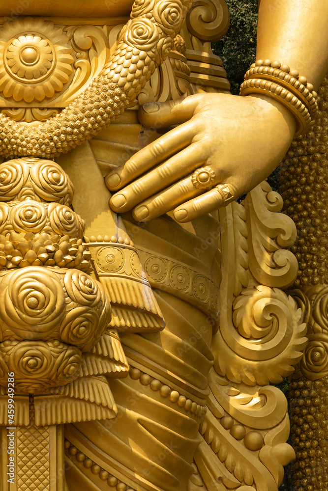 Closeup of the huge statue Sri Muruga, the Hindu god of war, near the Batu Caves, in the Gombak District, Selangor, Malaysia