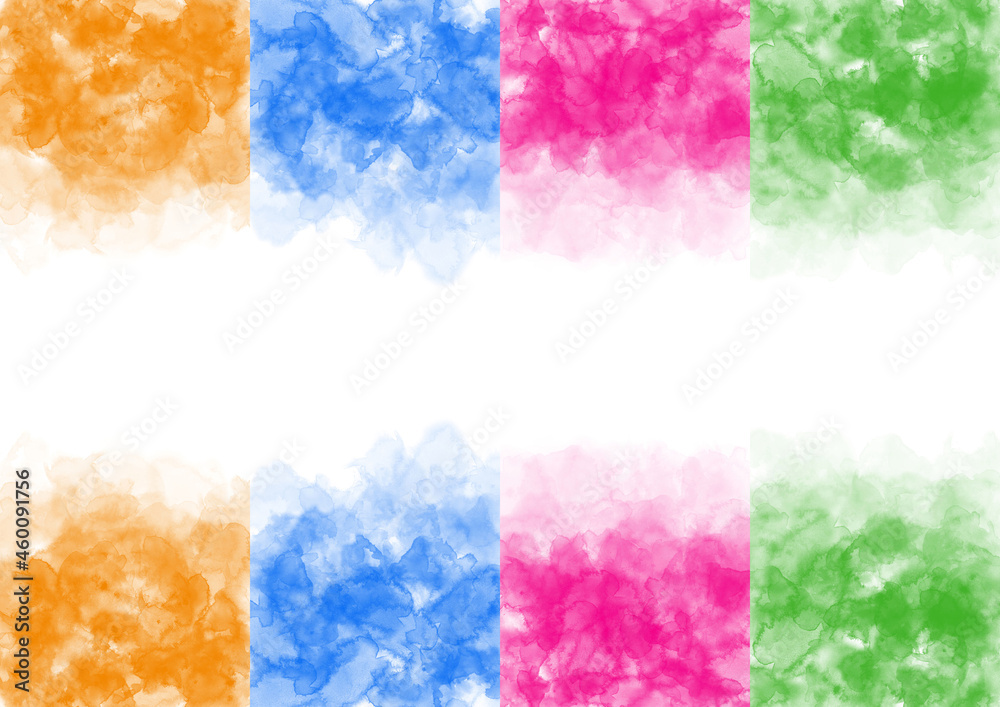 Blue.Red.Yellow.Green Multi-color watercolor background. Abstract hand painted square stained background