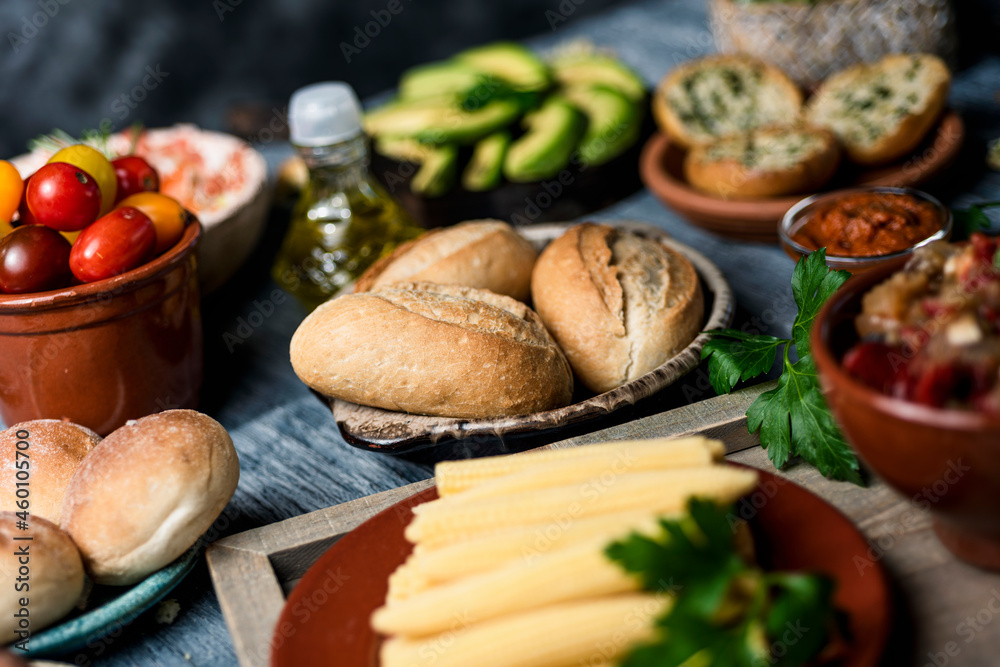 baby sweetcorn, bread buns and other ingredients