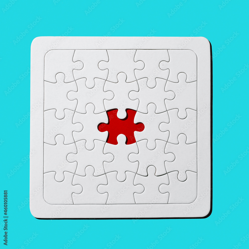red gap in a blank jigsaw puzzle