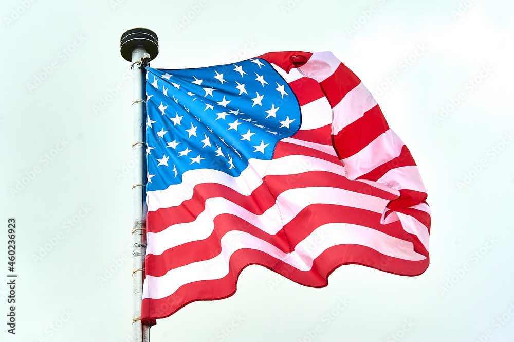 The USA flag is hanging on the flagpole