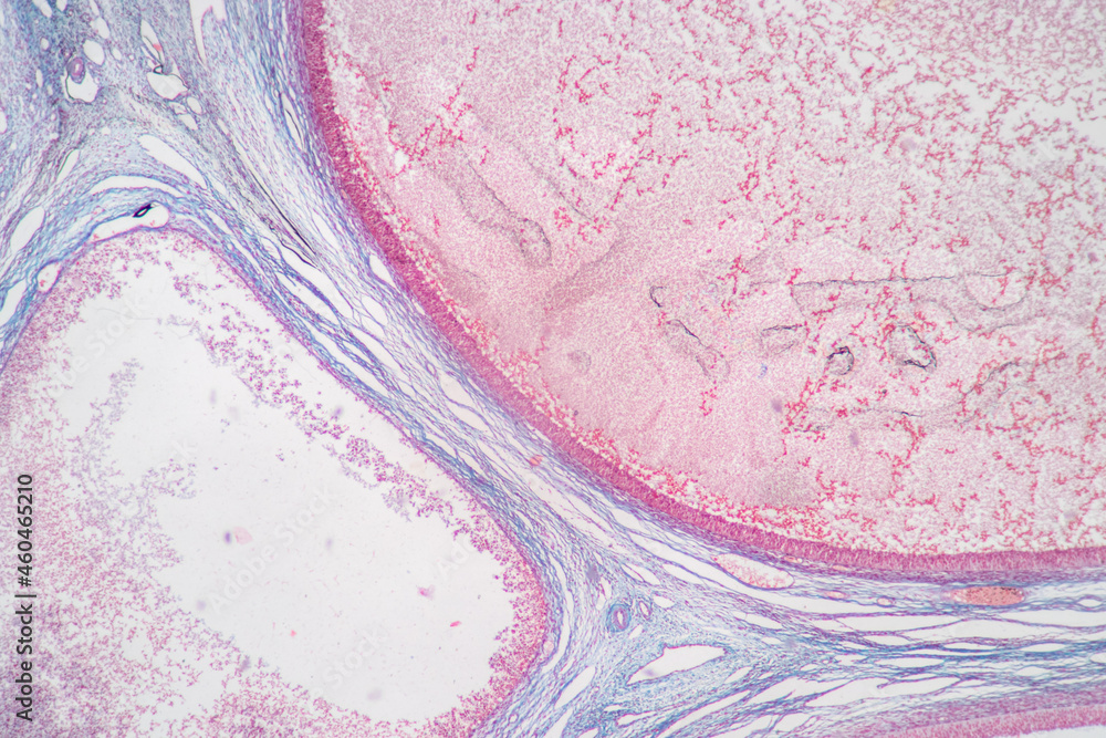 Anatomy and Histological Ovary and Testis human cells under microscope.