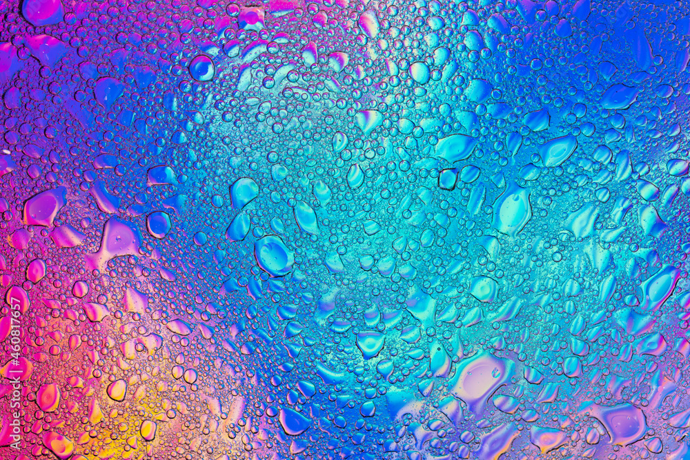 Аbstract image of oil and water bubbles of various colors. Colorful artistic image of oil drop on water for modern and creation design background