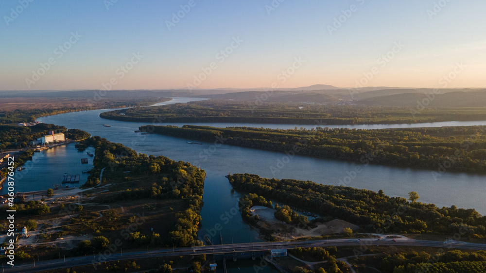 The estuary of the River Tamis with Danube towards Pancevo, Serbia.