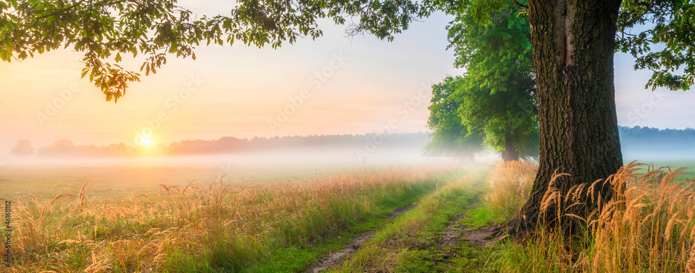 Beautiful foggy morning at the old oaks avenue
