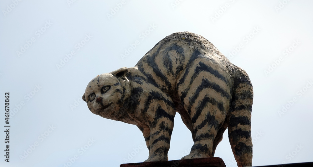 Sculpture of a cat on the roof hisses