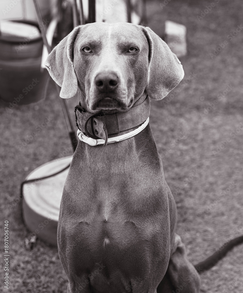 Young disappointed cute girl in Christmas hat is unpacking gift box on yellow background with unhappy face