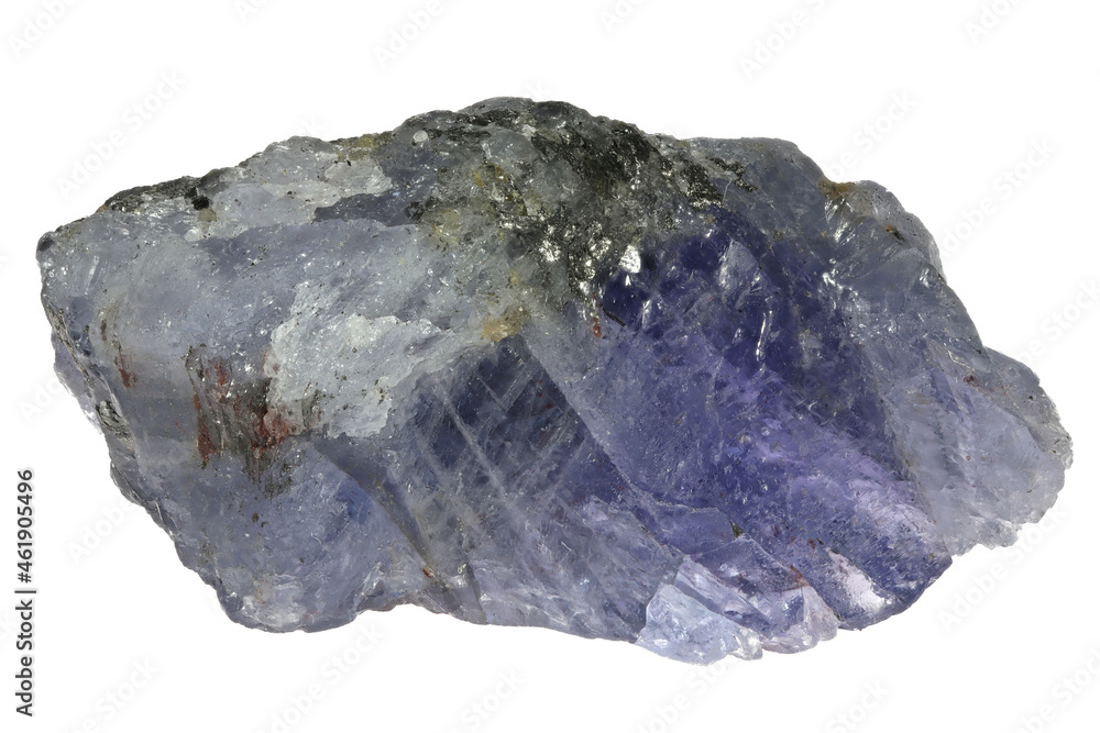 tanzanite crystal from Merelani Hills, Tanzania isolated on white background