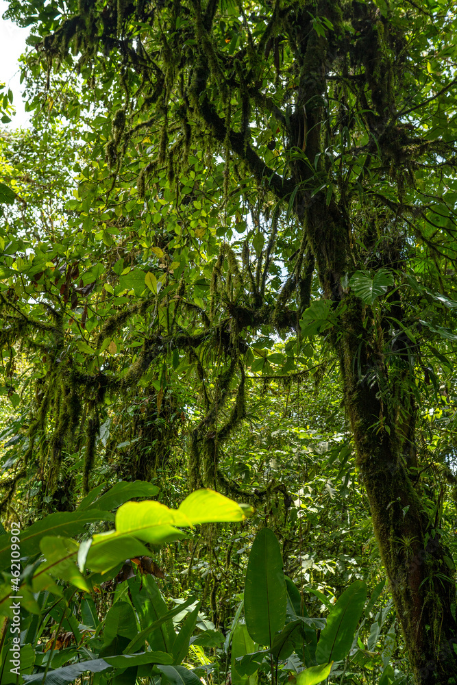 Tropical plants and trees combinations in Costa Rica, Monteverde rainforest.