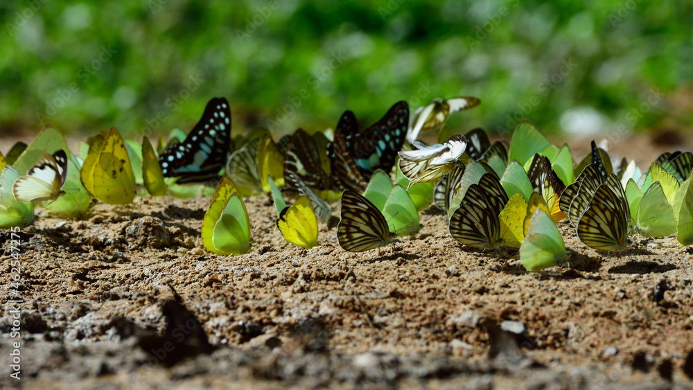 butterfly on ground they eating salt-lick near the stream in the jungle.
