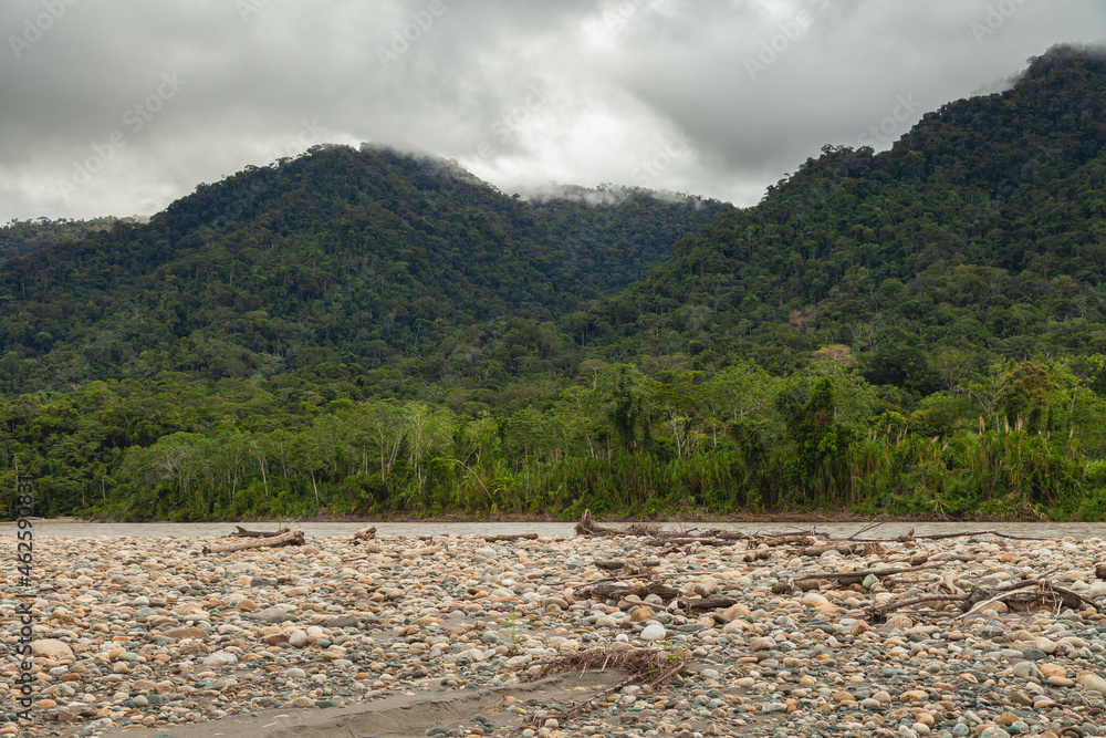 Impressive landscape of the mountains, and the Amazon rainforests, on the banks of the Madre de Dios River, in the Manu National Park