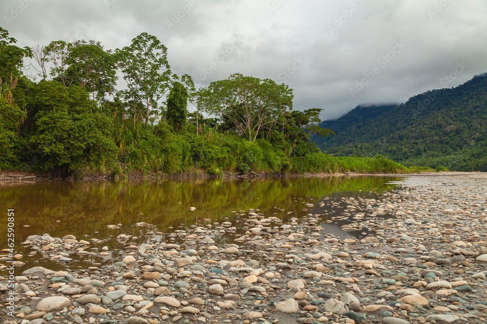 Impressive landscape of the mountains, and the Amazon rainforests, on the banks of the Madre de Dios River, in the Manu National Park