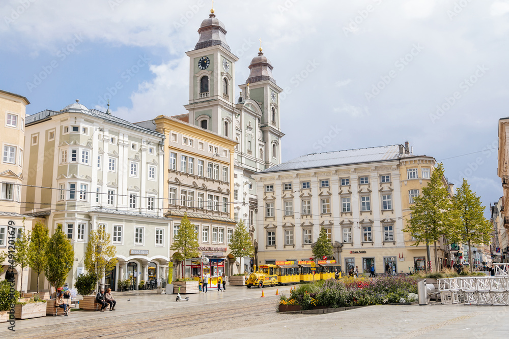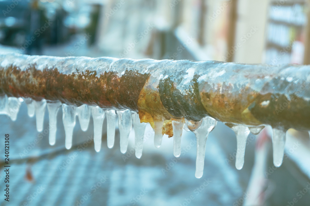 Photo of carefree beautiful woman grey sleepwear hand arm mask smiling isolated violet color background