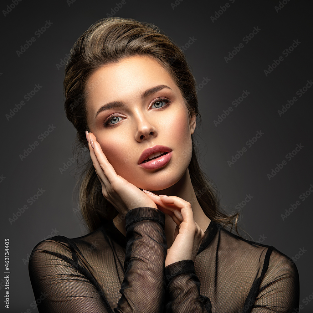 Beautiful face of young woman with healthy skin. Pretty model caring of face. Skin care concept..