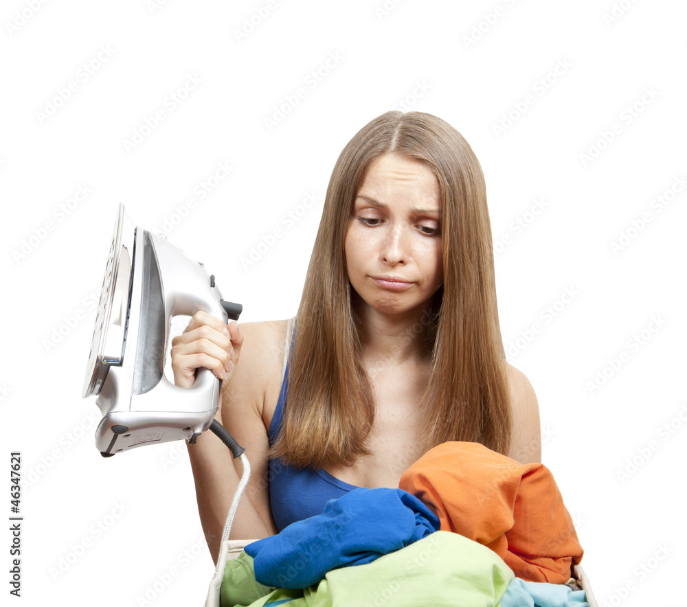 young woman with laundry, housework