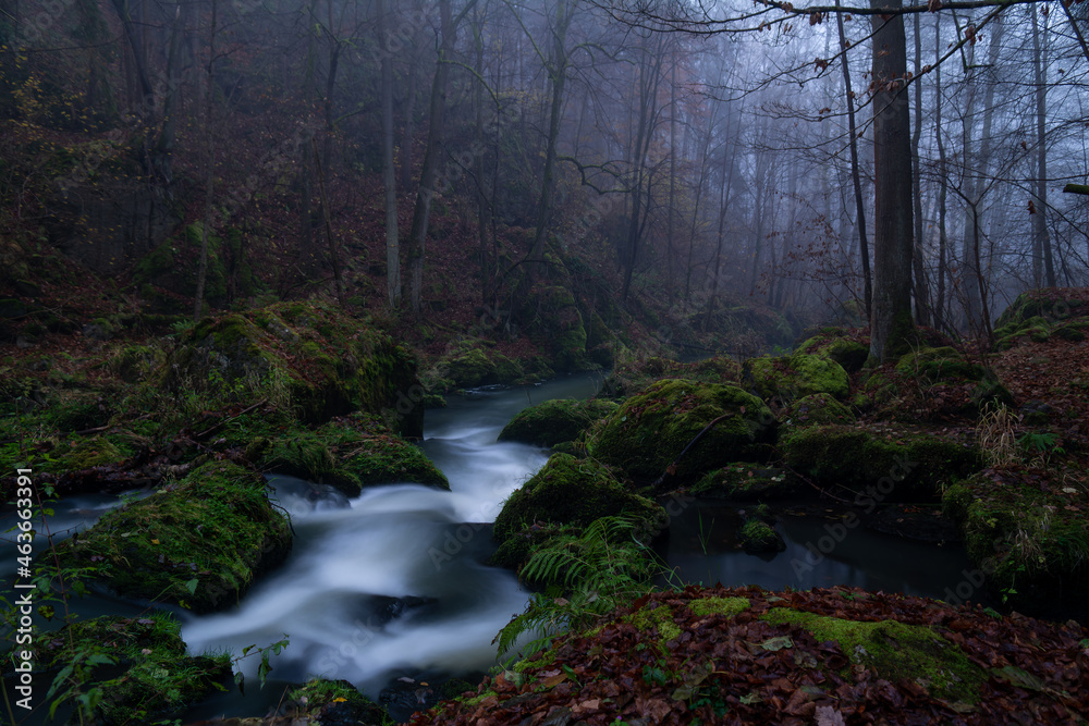 smooth motion of wild water in a river in summer with rocks and stones in the beautiful nature of a forest