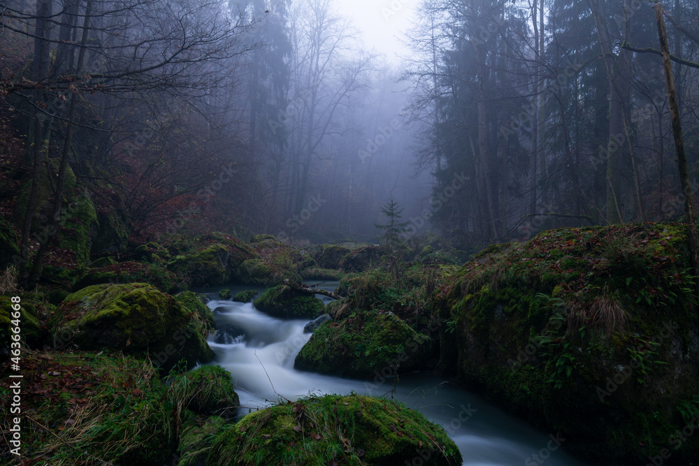 smooth motion of wild water in a river in summer with rocks and stones in the beautiful nature of a forest