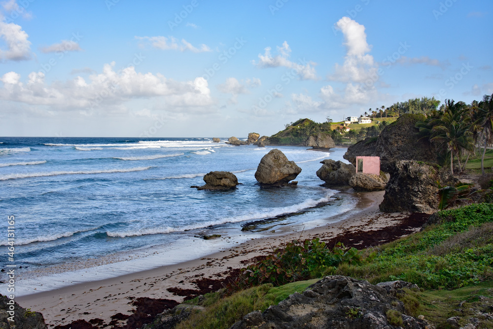 Abandoned beach house located on the atlantic east coast of the Caribbean island of Barbados at a town called Bathsheba.