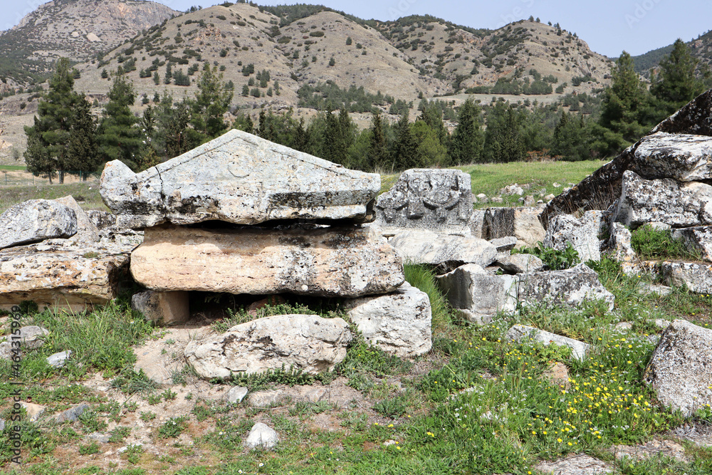 ruined tomb in Necropolis of ancient city Hierapolis, Pamukkale, Turkey